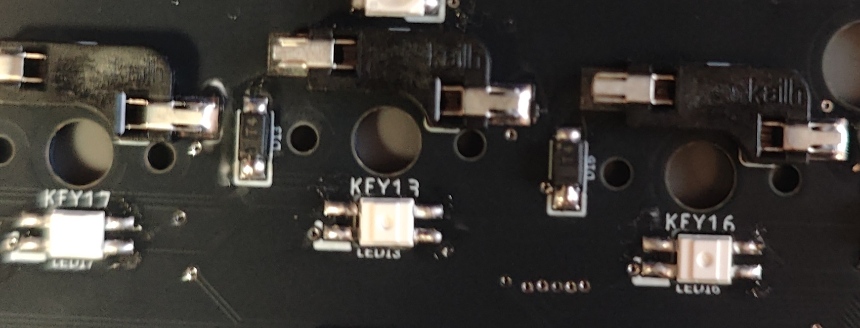 Next up are the per-key (Mini-E) LEDs, just like the underglow LEDs, these are sensitive to heat.\